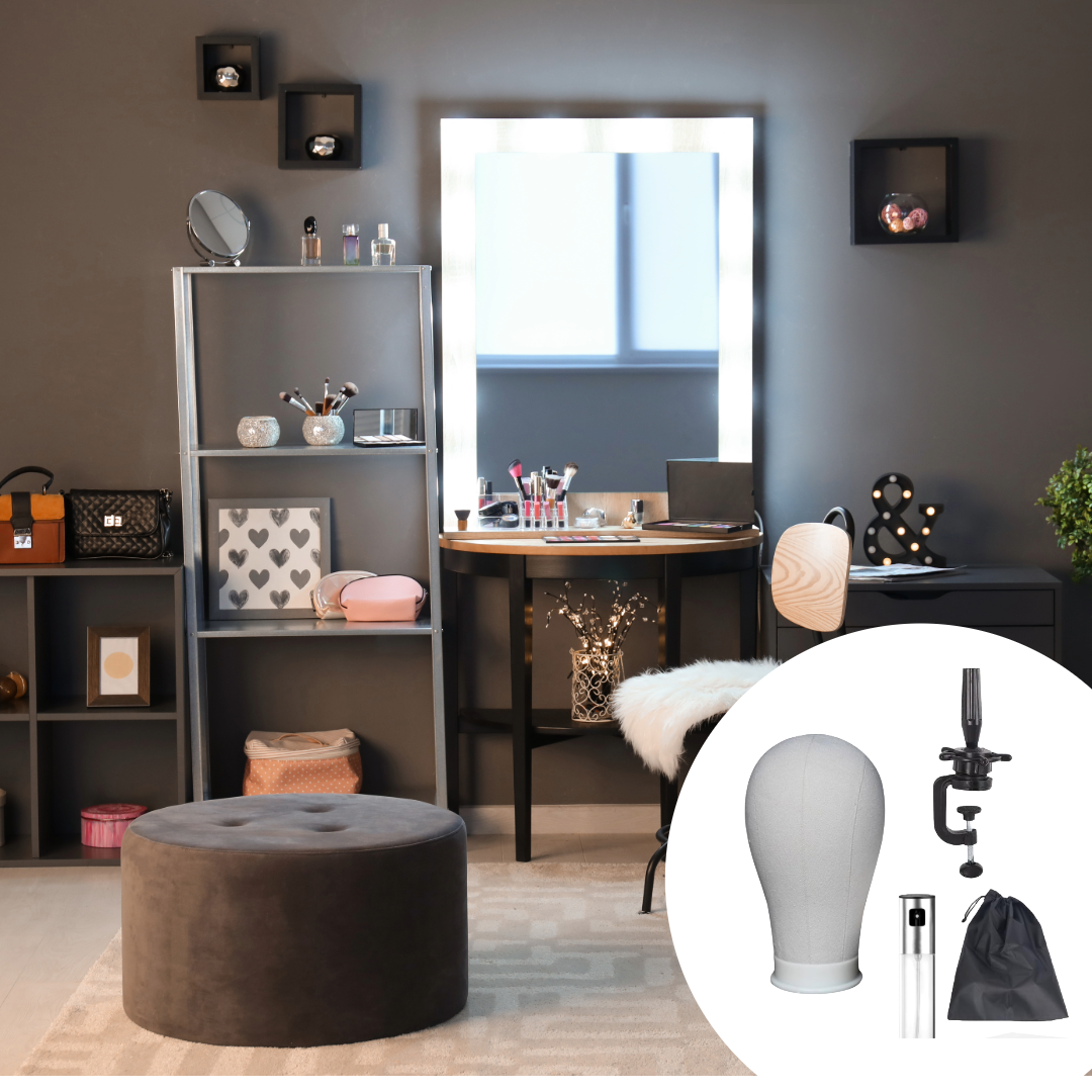 Each LaceFit Canvas Wig Head Glam also comes with a complimentary silk storage bag and a spray bottle. The silk storage bag protects your wigs from dust and damage when not in use. The spray bottle keeps your wigs moisturized and looking their best.